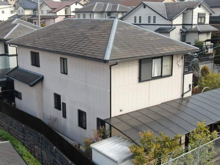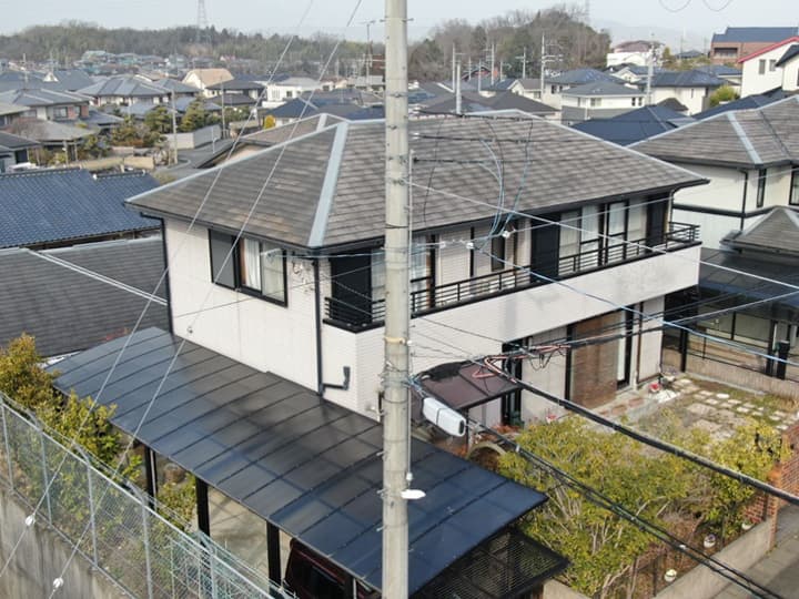 スーパーガルテクトは「ちぢみ塗装」を採用した意匠性に富んだ屋根材なので、素敵な仕上がりになりました。